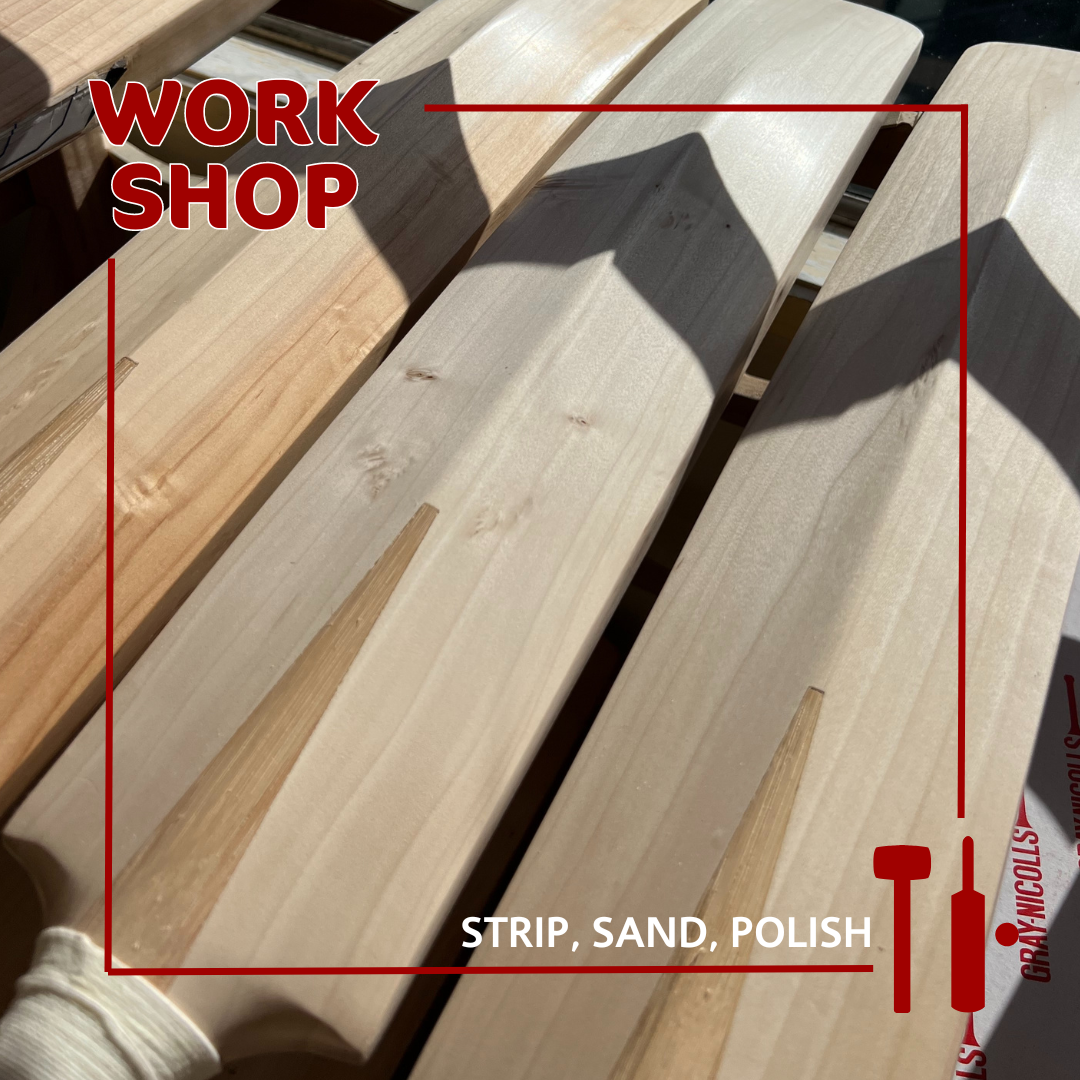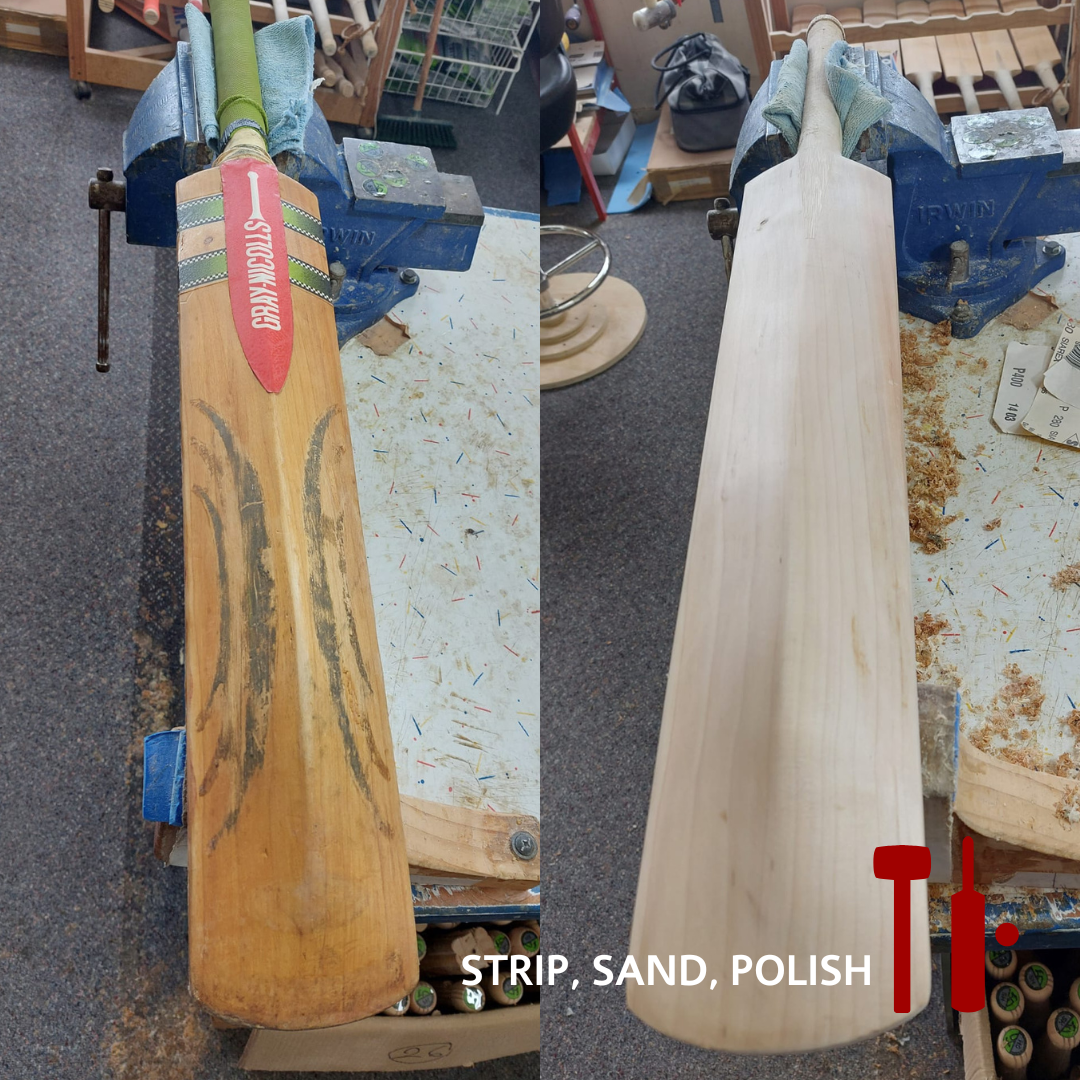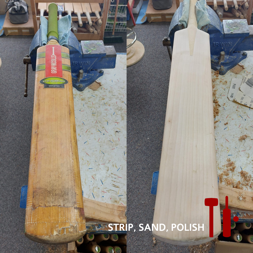 This can help remove sunbleaching (where the wood 'tans' from sun exposure) as well as removing cherries or other grime from the bat. Concave profile bats involve a lot of hand sanding, so take longer than full profile ones.