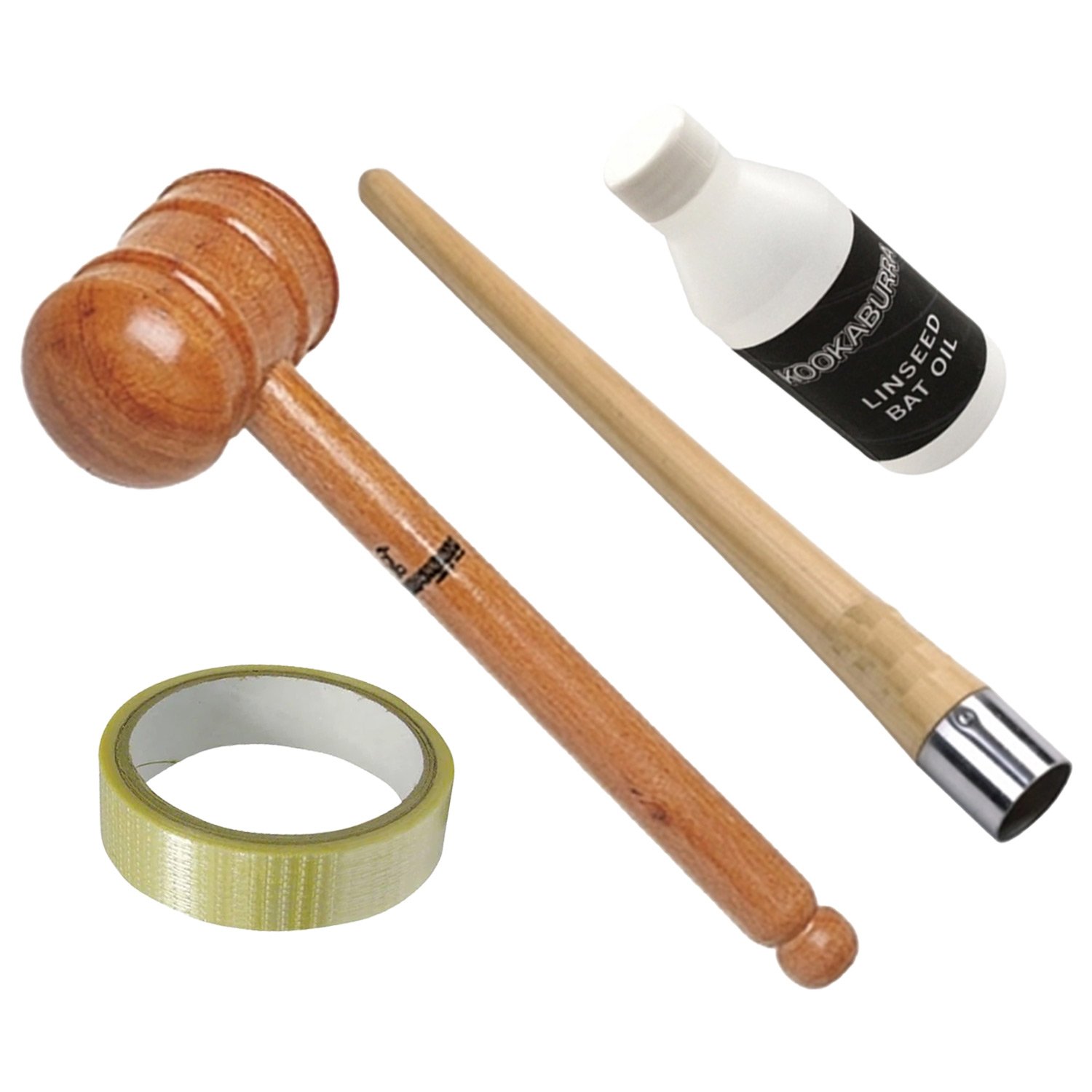 Kookaburra Bat Care Pack includes essential tools like a bat mallet, linseed oil, grip cone, and fibre tape to keep your cricket bat in top condition.