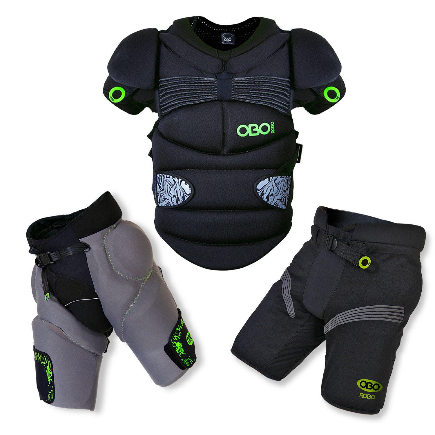 The OBO ROBO Softs Bundle is a field hockey goalkeeper protection set combining the ROBO Chest Guard, ROBO Hot Pants and ROBO Over Pants for flexible coverage, secure fit and match-ready mobility, trusted by serious players.
